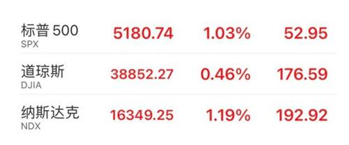美股三大股指周一集體收漲,其中納斯達克指數的上漲幅度達到1.19%,標普500指數的上漲幅度達到1.03%,標普和納指實現三連漲,上漲到了三周以來的新高。道瓊斯指數的上漲幅度達到0.16%,四連漲上漲到了近四周以來的新高,大型科技股大多數上漲。