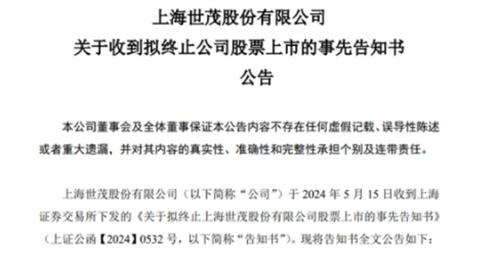 2.*ST世茂的股票按照股票上市規則中的規定,將會從2024年5月16日開始停牌。在該公司提出聽證、申辯、和陳述的有關期限屆滿15個交易日之內,上交所召開了上市委員會,根據審議意見,做出了將該公司股票終止上市的決定。