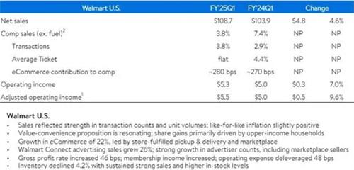 高收入消費者的持續流入,提振了沃爾瑪的銷售。沃爾瑪美國同店的銷售額的銷售額截止到2024年4月26日的季度,增長幅度達到3.8%,與華爾街的預期相比要高,交易量比一年前相比增長了3.8%。