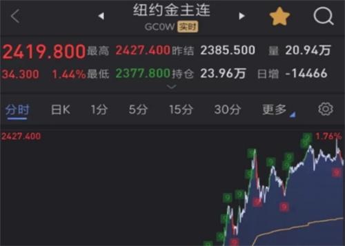 2.COMEX黃金的價格截止到周五,收盤時為每盎司2419.8美元,上漲幅度達到1.44%。倫敦金的報價為每盎司2414.5美元,上漲幅度達到1.61%。