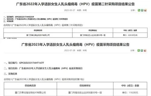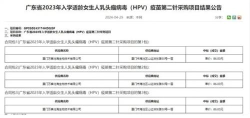 1.二價(jià)HPV疫苗的價(jià)格在一個(gè)月之前剛剛跌破百元。江蘇政府采購(gòu)網(wǎng)此前公布了二價(jià)HPV疫苗采購(gòu)成交的公告,公告信息顯示中標(biāo)單位為萬(wàn)泰生物,中標(biāo)價(jià)格是86元/支。