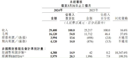 快手于5月22日發布2024年第1季度的業績報告,報告顯示2024年第一季度快手的營業收入達到人民幣294億,同比增長的幅度高達16.6%,凈利潤達到人民幣41億,經調之后的利潤凈額達到人民幣43.88億,創下了單季的新高。