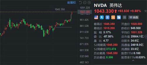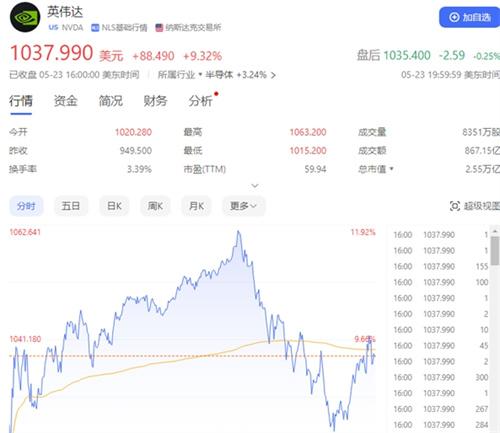 1.英偉達(dá)的股票價(jià)格截止到5月23日美股收盤時(shí),達(dá)到每股1037.99美元,上漲幅度達(dá)到9.32%,首次突破了每股1000美元價(jià)格,創(chuàng)下了歷史的新。