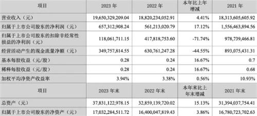 2.科大訊飛近日發布年報,年報信息顯示2023年科大訊飛的營業收入為人民幣196.5億,同比增長的幅度為4.41%,凈利潤值為人民幣6.57億,同比增長的幅度是17.12%。2022年的營業收入是人民幣188.2億,同比增長的幅度是2.77%,可以說科大訊飛的營業收入已經兩年連續原地踏步。