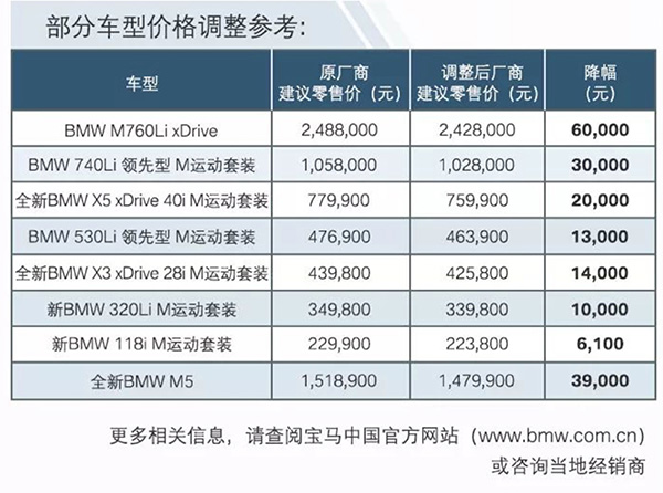 寶馬部分車型價(jià)格調(diào)整參考。