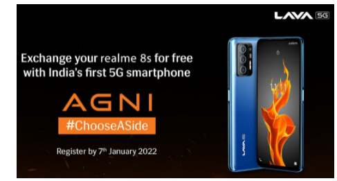 該優惠目前在 2022 年 1 月 3 日至 1 月 7 日期間在全國范圍內提供。希望更換 realme 8s 智能手機的用戶可以在Lava 的電子商店填寫在線表格,并獲得一部新的 AGNI 5G 手機。