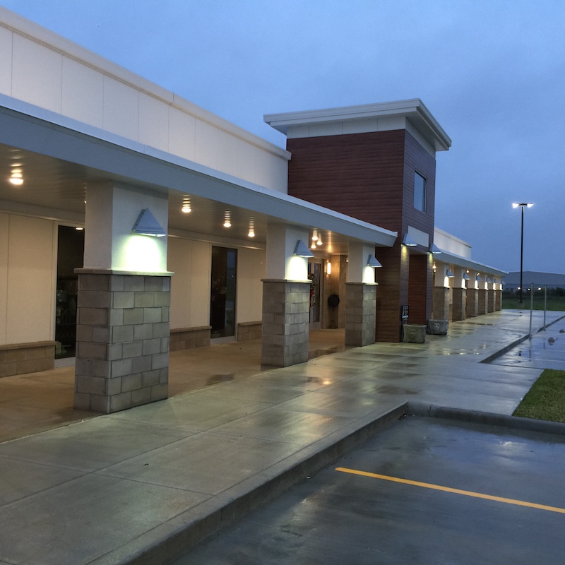 單坡屋頂采用11,857平方英尺的MBCI 24號Galvalume Plus Double-Lok直立縫屋頂系統。屋頂與R-32絕緣。購物中心通往主要購物大樓的入口通道在高低側和末端墻壁上設有1英尺4英寸的細長天蓬。入口頂篷有MBCI的白雪公主Artisan L12金屬拱腹板。第二個天蓬,在屋檐下,由24號鋼,支撐梁和裝飾柱構成,以覆蓋圍繞主要購物建筑的走道。