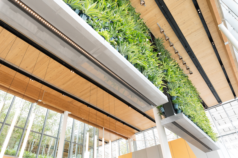 地面上種植了70多棵樹(shù),還有一個(gè)植被屋頂空間和由蕨類植物和白樺樹(shù)組成的浮動(dòng)玻璃花園。此外,客廳墻將自然直接帶入餐廳。該景觀包括原生和抗旱植物以及地表滲透性攤鋪機(jī),以最大限度地減少灌溉并減少雨水徑流。其他可持續(xù)的功能包括現(xiàn)場(chǎng)太陽(yáng)能電池陣列,內(nèi)部和外部LED照明,以及節(jié)能廚房和暖通空調(diào)設(shè)備。