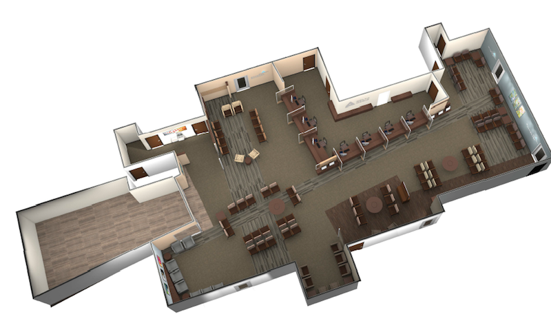 Delta Medix新辦公室主要等候區的空中渲染,包括泌尿科,普通外科,耳鼻喉科,影像學,聽力學,過敏和肺部實踐。圖片:Highland Associates