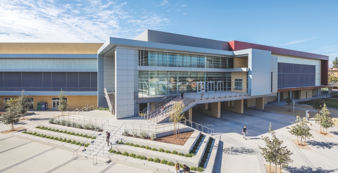 圣貝納迪諾(加利福尼亞州)谷社區學院運動學和運動中心,由HMC Architects設計。三層,108,509平方英尺,6900萬美元的設施有兩個NCAA比賽gymasiums。照片:David Fennema,HMC Architects。