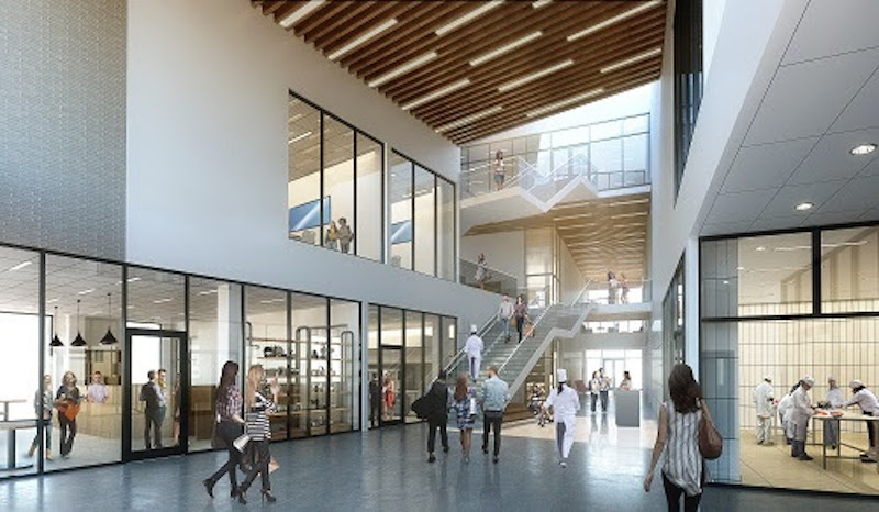 被稱為“烹飪中心”的三層天空照明空間將成為該建筑的主要組織特色。它將成為所有內部建筑項目元素的重心,也是校園和克利夫蘭大道的主要入口。