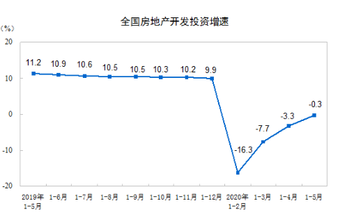 1—5月份,全國房地產開發投資45920億元,同比下降0.3%,降幅比1—4月份收窄3.0個百分點。其中,住宅投資33765億元,同比持平,1—4月份為下降2.8%。