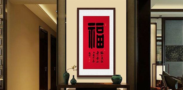 要想擋煞迎福,福氣迎門,在進門玄關處宜掛一幅名家手筆的福字書法,既可以看著喜氣盈盈,又寓意著招財納福,好運連連。福字在中國可不是一般的字,石開老師書法墨寶《福》字書法,它幾乎囊括了一切好事,既是豐衣足食,富貴興旺,又是健康平安,和諧美滿,更是國泰民安,天下太平。