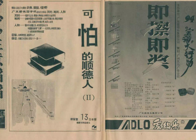 1994年1月3日到2月8日,碧桂園先后在《羊城晚報(bào)》上刊登6期“可怕的順德人”系列廣告,制造懸念,逐步推出碧桂園學(xué)校,并在全國(guó)各地高薪招聘教師,立志將碧桂園學(xué)校打造成“二十一世紀(jì)經(jīng)濟(jì)大潮中的黃埔軍校”。廣告形式新穎,內(nèi)容緊貼當(dāng)時(shí)社會(huì)熱點(diǎn),媒體爭(zhēng)相報(bào)道,轟動(dòng)一時(shí)。
