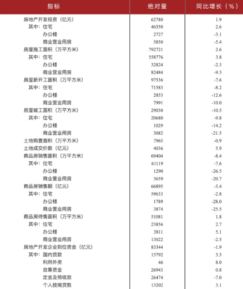 1-6月,全國房地產開發投資62780億元,同比增長1.9%,1-5月為下降0.3%。其中,住宅投資46350億元,增長2.6%,增速比1-5月份提高2.6個百分點。