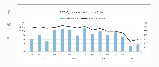 但是,現在得出結論的困難在于,交易的樣本量很小,因為自Covid-19大流行以來,市場上登記的交易較少。甚至在Covid之前,由于《住房穩定和租戶保護法》的出現,2019年投資銷售就出現了下降,該法案使受租金管制的業主無法籌集資金來管理和改善房地產,從而導致潛在買家和投資者的活動急劇減少。