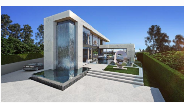 高聳入云的瀑布特征流入反射池,開始進(jìn)入房屋入口。懸架玻璃橋越過入口,該玻璃橋越過內(nèi)部中庭以達(dá)到閾值。
