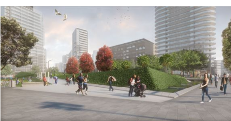這個龐大的住宅,文化,工作,零售和娛樂郊區建在已清除的278公頃高度工業化土地上,仍然是起重機,卡車,手提鉆和停車/慢速標志的塵土飛揚,嘈雜的景象。
