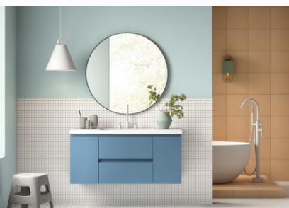 啞光飾面具有現代外觀和輕松的氛圍。盡管黑色磨砂櫥柜和家電正在流行,但選擇帶有啞光飾面的彩色裝飾是將兩種趨勢融入一個空間的好方法。布雷斯林說:“尋找有趣的流行色彩來增加浴室或廚房的裝飾效果,尤其是暖色調的色調,既柔和又獨特。” “在亞光黃銅層燈具,啞光藍色的虛榮心,和一個溫暖的瓷瓦,使這種趨勢的生活。”