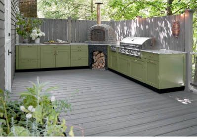 丹佛戶外廚房創意總監丹尼爾·日耳曼尼(Daniel Germani)說,一個完整的戶外廚房可以包含室內廚房中發現的任何元素,該公司還生產Trex戶外廚房和布朗喬丹戶外廚房。