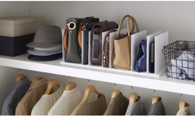 小手提包會在您的壁櫥中造成混亂嗎?具有可定制分隔線的Yamazaki家用旅行袋收納袋有黑白兩種選擇,是整理和展示您的旅行袋的最佳方式。非常容易組裝,有兩個底部部件,它們與滑動到每個插槽中的平面分隔器卡在一起。該模塊化系統為狹窄和較寬的袋子站立提供了正確的契合度。它還可以創造出美觀的顯示效果。