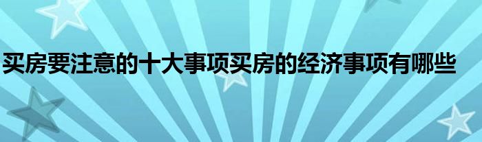 對于很多中國人來說,買房子可是非常期待的事情,畢竟擁有了一套屬于自己的房子,才會讓自己心里面感覺到安心,但是想要買房子并不是一個容易的事情,畢竟房子不僅要花費很多的金錢,而且還應該要注意風水方面的問題,那么買房要注意的十大事項,買房的經(jīng)濟事項有哪些?下面有相關介紹。