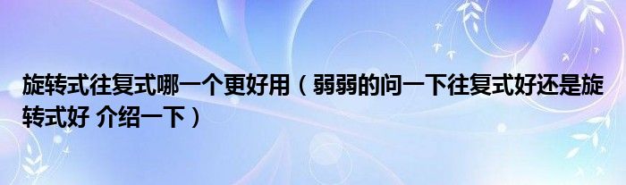 大家好,小愛(ài)為大家解答以上旋轉(zhuǎn)式往復(fù)式哪一個(gè)更好用,弱弱的問(wèn)一下往復(fù)式好還是旋轉(zhuǎn)式好 介紹一下的問(wèn)題,大家在裝修房子時(shí)不了解旋轉(zhuǎn)式往復(fù)式哪一個(gè)更好用,弱弱的問(wèn)一下往復(fù)式好還是旋轉(zhuǎn)式好 介紹一下的信息,下面分享給大家一起了解下吧。
