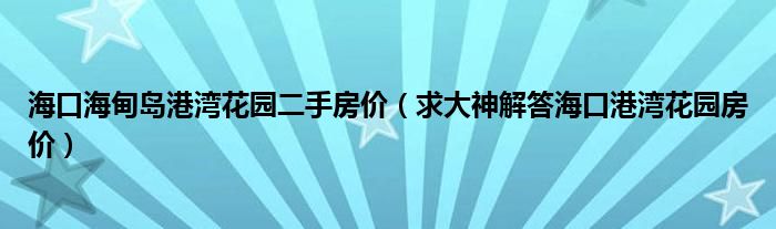 大家好,小愛為大家解答以上海口海甸島港灣花園二手房價,求大神解答海口港灣花園房價的問題,大家在裝修房子時不了解海口海甸島港灣花園二手房價,求大神解答海口港灣花園房價的信息,下面分享給大家一起了解下吧。