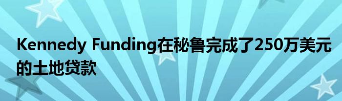 在9月10日,肯尼迪資金收于$ 2.5萬土地貸款艾倫CONSTRUCCIONES SAC其住宅項目的建設資金。該貸款最初將用作營運資金。