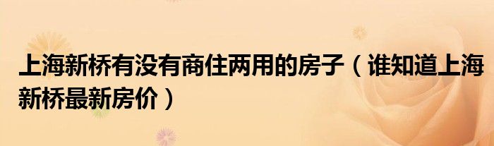 大家好,小愛為大家解答以上上海新橋有沒有商住兩用的房子,誰知道上海新橋最新房價的問題,大家在裝修房子時不了解上海新橋有沒有商住兩用的房子,誰知道上海新橋最新房價的信息,下面分享給大家一起了解下吧。