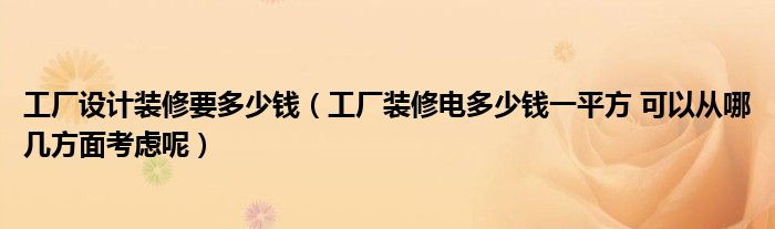 大家好,小愛為大家解答以上工廠設計裝修要多少錢,工廠裝修電多少錢一平方 可以從哪幾方面考慮呢的問題,大家在裝修房子時不了解工廠設計裝修要多少錢,工廠裝修電多少錢一平方 可以從哪幾方面考慮呢的信息,下面分享給大家一起了解下吧。