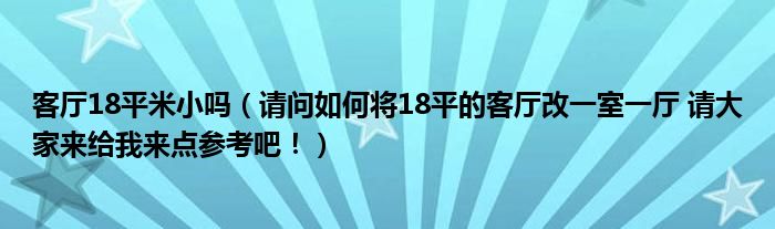 大家好,小愛為大家解答以上客廳18平米小嗎,請問如何將18平的客廳改一室一廳 請大家來給我來點參考吧!的問題,大家在裝修房子時不了解客廳18平米小嗎,請問如何將18平的客廳改一室一廳 請大家來給我來點參考吧!的信息,下面分享給大家一起了解下吧。