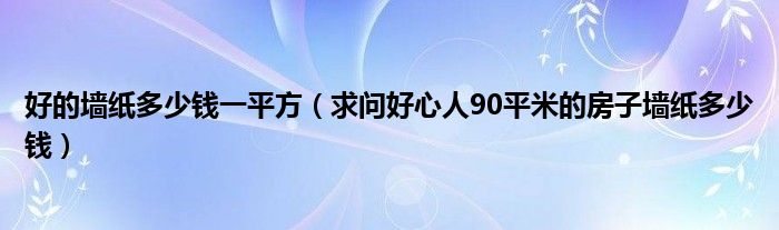 大家好,小愛為大家解答以上好的墻紙多少錢一平方,求問好心人90平米的房子墻紙多少錢的問題,大家在裝修房子時不了解好的墻紙多少錢一平方,求問好心人90平米的房子墻紙多少錢的信息,下面分享給大家一起了解下吧。