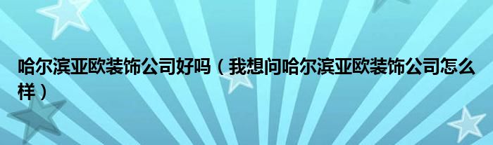 大家好,小愛為大家解答以上哈爾濱亞歐裝飾公司好嗎,我想問哈爾濱亞歐裝飾公司怎么樣的問題,大家在裝修房子時不了解哈爾濱亞歐裝飾公司好嗎,我想問哈爾濱亞歐裝飾公司怎么樣的信息,下面分享給大家一起了解下吧。
