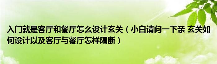 大家好,小愛為大家解答以上入門就是客廳和餐廳怎么設計玄關,小白請問一下親 玄關如何設計以及客廳與餐廳怎樣隔斷的問題,大家在裝修房子時不了解入門就是客廳和餐廳怎么設計玄關,小白請問一下親 玄關如何設計以及客廳與餐廳怎樣隔斷的信息,下面分享給大家一起了解下吧。