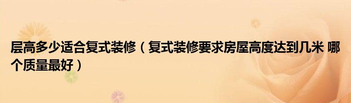 大家好,小愛為大家解答以上層高多少適合復式裝修,復式裝修要求房屋高度達到幾米 哪個質量最好的問題,大家在裝修房子時不了解層高多少適合復式裝修,復式裝修要求房屋高度達到幾米 哪個質量最好的信息,下面分享給大家一起了解下吧。