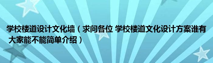 大家好,小愛為大家解答以上學校樓道設計文化墻,求問各位 學校樓道文化設計方案誰有 大家能不能簡單介紹的問題,大家在裝修房子時不了解學校樓道設計文化墻,求問各位 學校樓道文化設計方案誰有 大家能不能簡單介紹的信息,下面分享給大家一起了解下吧。