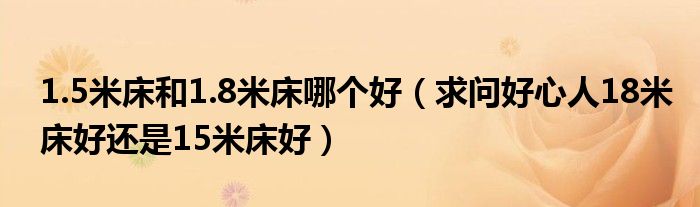 大家好,小愛為大家解答以上1.5米床和1.8米床哪個好,求問好心人18米床好還是15米床好的問題,大家在裝修房子時不了解1.5米床和1.8米床哪個好,求問好心人18米床好還是15米床好的信息,下面分享給大家一起了解下吧。