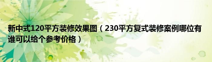 大家好,小愛為大家解答以上新中式120平方裝修效果圖,230平方復式裝修案例哪位有 誰可以給個參考價格的問題,大家在裝修房子時不了解新中式120平方裝修效果圖,230平方復式裝修案例哪位有 誰可以給個參考價格的信息,下面分享給大家一起了解下吧。
