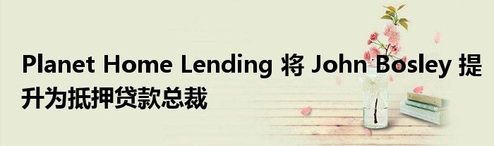 星球房屋貸款有限責任公司,國家貸款和服務商,已任命約翰·博斯利作為,按揭貸款。Bosley 擁有二十年的行業經驗,將領導公司的發起、履行、通訊員和資本市場部門。