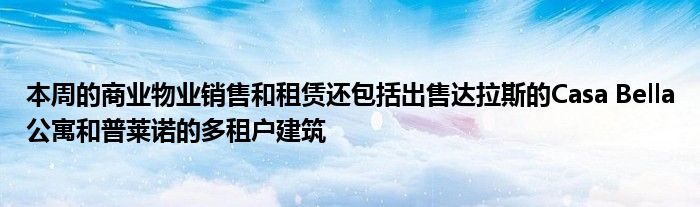 一位個人投資者購買了達拉斯Peavy Road 2970號擁有176個單元的公寓物業Casa Bella。Marcus&Millichap的Nick Fluellen和Bard Hoover促成了此次交易。