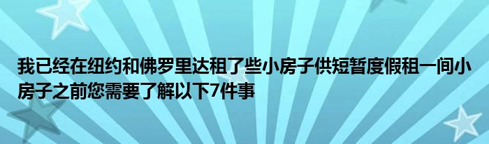 我已經在紐約和佛羅里達租了些小房子供短暫度假。租一間小房子之前,您需要了解以下7件事。