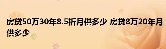 大家好,我是云百科的客服小柏,我來為大家解答以上問題。房貸50萬30年8.5折月供多少,房貸8萬20年月供多少,很多人還不知道,現在讓我們一起來看看吧!