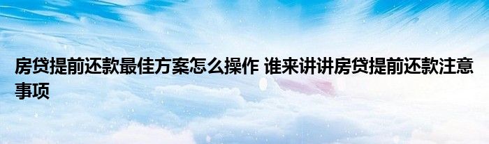 大家好,我是云百科的客服小柏,我來為大家解答以上問題。房貸提前還款最佳方案怎么操作,誰來講講房貸提前還款注意事項,很多人還不知道,現在讓我們一起來看看吧!