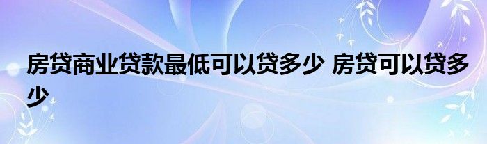 大家好,我是云百科的客服小柏,我來為大家解答以上問題。房貸商業(yè)貸款最低可以貸多少,房貸可以貸多少,很多人還不知道,現(xiàn)在讓我們一起來看看吧!