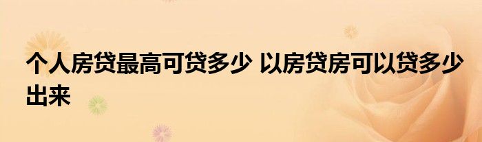 大家好,我是云百科的客服小柏,我來為大家解答以上問題。個人房貸最高可貸多少,以房貸房可以貸多少出來,很多人還不知道,現在讓我們一起來看看吧!