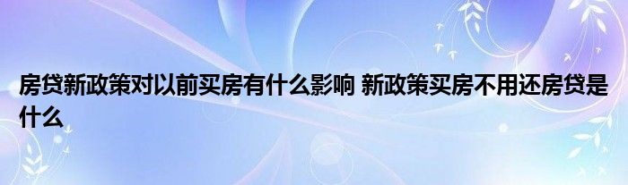 大家好,我是云百科的客服小柏,我來(lái)為大家解答以上問題。房貸新政策對(duì)以前買房有什么影響,新政策買房不用還房貸是什么,很多人還不知道,現(xiàn)在讓我們一起來(lái)看看吧!