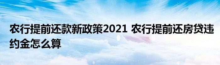 大家好,我是云百科的客服小柏,我來為大家解答以上問題。農行提前還款新政策2021,農行提前還房貸違約金怎么算,很多人還不知道,現在讓我們一起來看看吧!