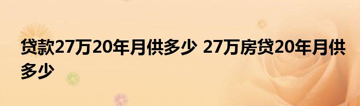 大家好,我是云百科的客服小柏,我來為大家解答以上問題。貸款27萬20年月供多少,27萬房貸20年月供多少,很多人還不知道,現在讓我們一起來看看吧!