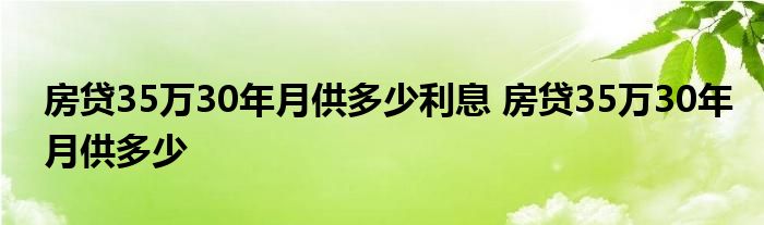 大家好,我是云百科的客服小柏,我來為大家解答以上問題。房貸35萬30年月供多少利息,房貸35萬30年月供多少,很多人還不知道,現在讓我們一起來看看吧!